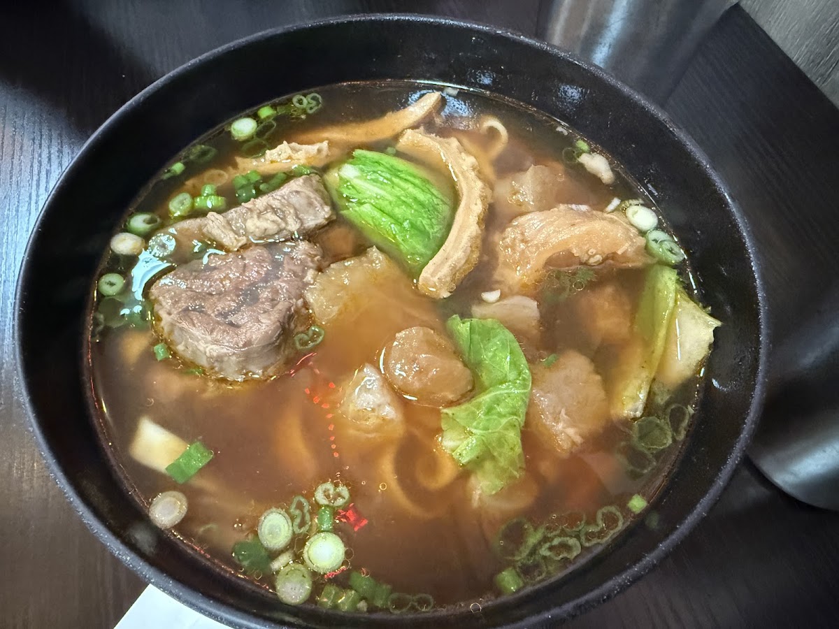A hidden Taiwanese gem in Fremont that we found via a popular YouTuber! The interior is a cute, night market themed place with padded stools and lots of old timey decor. Staff mostly speaks Chinese but there was a lady who spoke great English that can help answer questions so fear not! Ordering is done via QR code and THEY DO TAKE CARD! I saw other comments mention it was cash only so they must've changed this recently but it was nice to not have to run to an ATM in the middle of our meal. We ordered the Spicy Beef Stew Noodle soup and the Wonton Noodle Soup. Both were spot on! The beef noodle soup had great flavor with nice, al dente noodles and a deceptively spicy broth that got hotter as you kept eating (or maybe I'm just weak ). The wonton noodle soup was a surprise to us - very tasty with a lot of clean, natural tasting chicken broth (didn't feel like they used coloring or chicken powder to have that artificial taste) and the noodles were a thinner, rounded rice noodle that paired well with the dish to make it taste very clean. Great if you're looking for a lighter, less oily option. We also got their black sesame soy milk and black tea soy milk. Both were very tasty, came in a sealed cup with no ice but still cold. A bit on the sweet side but with a spicy noodle soup - having something more sweet was a relief although we'd probably pass on these next time given how sweet it was. It's also right next to Pineapple King Bakery so great for a two for one pit stop! We'll definitely be back to try more of their appetizers like their fried pork chop or popcorn chicken!