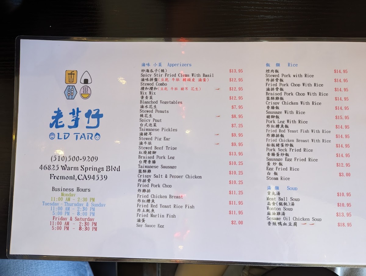 Overall, Old Taro provides a memorable dining experience with delicious food, cozy ambiance, and excellent service. Whether you're looking for a hearty bowl of noodle soup or a crispy fried snack, Old Taro has something for everyone to enjoy. Visit Old Taro in Fremont to indulge in the flavors of Taiwan and create unforgettable dining memories.